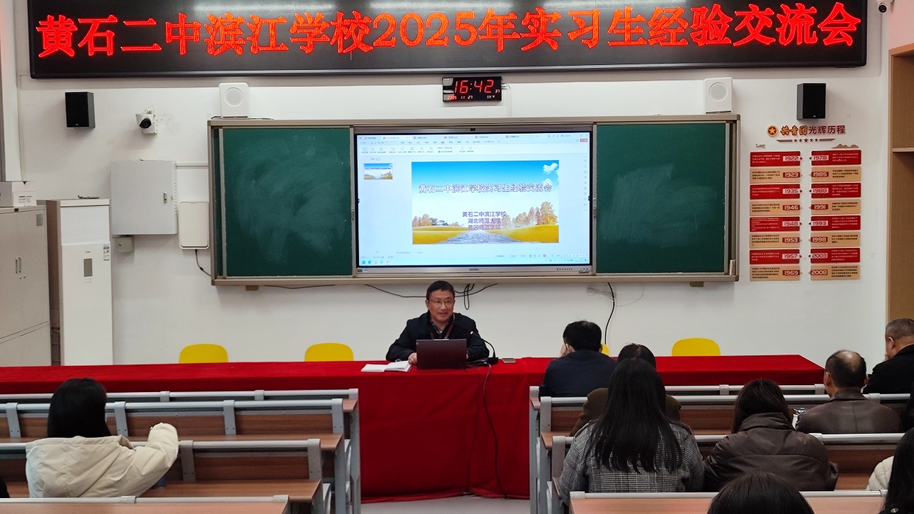 冬日暖阳,杏黄枫丹。12月27日,我校实习生经验交流会在温馨融洽的氛围中隆重举行。冯朝校长、毛弟汉副校长亲临现场,全体指导老师与来自湖北师大、黄冈师范学院的24名实习生共同参会。