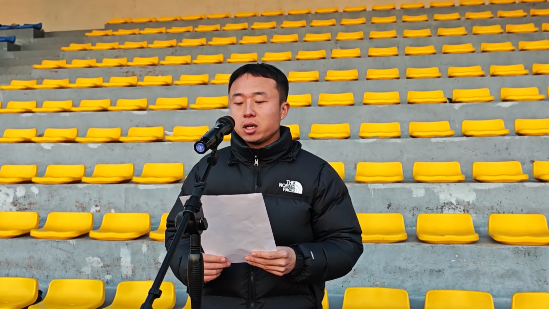 体育组组长戴文杰代表全体教练发言,鼓励同学们科学训练、高效学习,兼顾体能提升与文化积累。高一、高二训练队学生代表高二(8)班罗美薇同学也送上真诚祝福,体现了体育生大家庭的团结友爱。