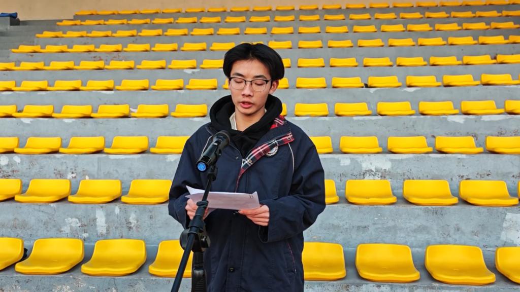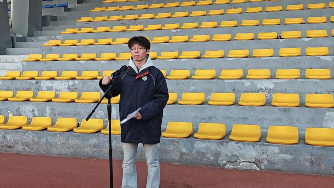 高三体育生代表高三(14)班祝国灿同学以“拼搏之声”为题分享了自己的训练与学习心得,表达了不畏艰难、双线并进的决心。